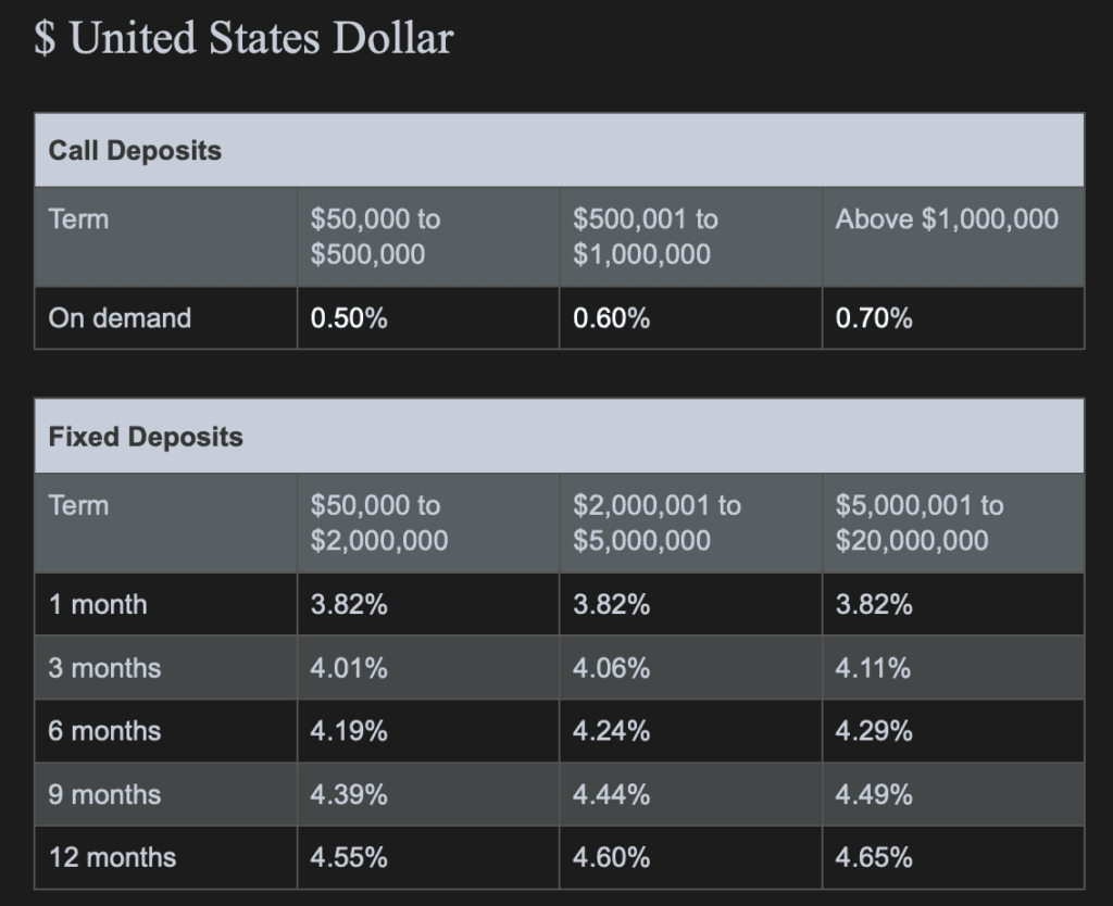 Here were the rates as of October 2024 in the bank I would say was the most suitable for non-residents.