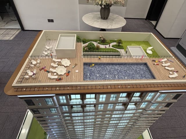 • Rooftop restaurant, garden, kids play room, 24/7 concierge service, etc