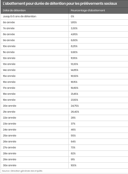 Capital gains taxes on property in France are extremely high, and phase out over 22 years, but weighted towards the end. And don’t forget the social security taxes on your capital gains, you have to pay those too, and they get phased out over….30 years, also geared towards the end. Right now there are discussions to remove the phasing out period and to impose a flat tax of 33% on capital gains.