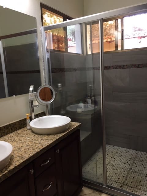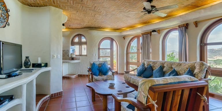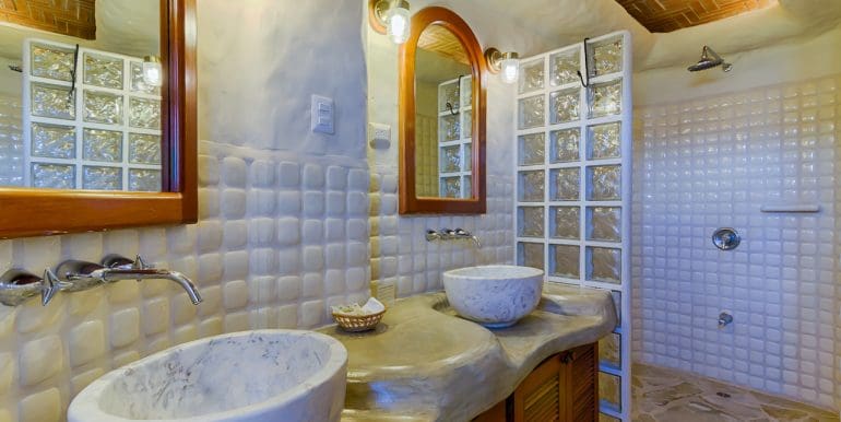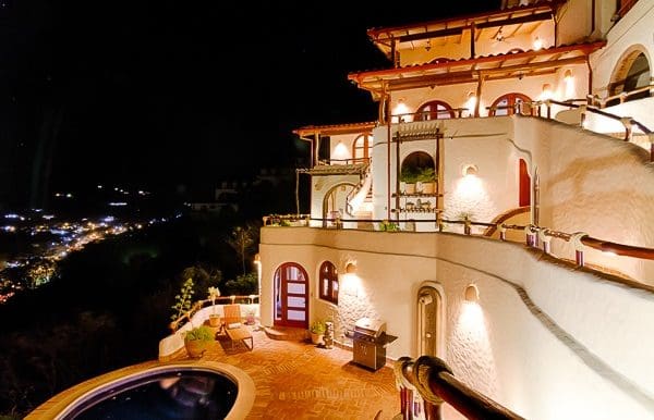 This massive house is in a gated community, walking distance from town down some steep steps. It offers unparalleled views of the bay, especially at sunset. This villa is massive, consisting of two units. You could choose to live in one and rent out the other, or keep it all to yourself.