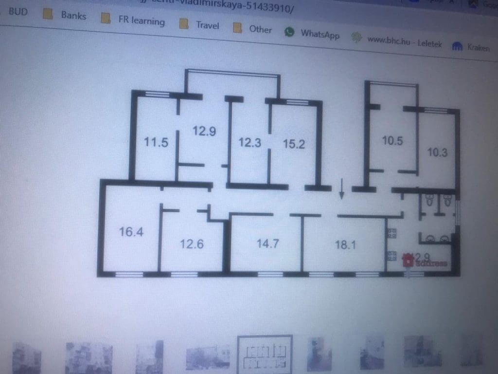 Here we can look at a very Soviet apartment; a komunalny. Essentially, it is a communist-era communal apartment. The bathroom and kitchen are the common area, and the 6 bedrooms belong to separate individuals or families or couples. In this particular komunalny, all the owners have decided to sell. So for your offer to be accepted, all 6 owners have to agree, which is no easy feat.