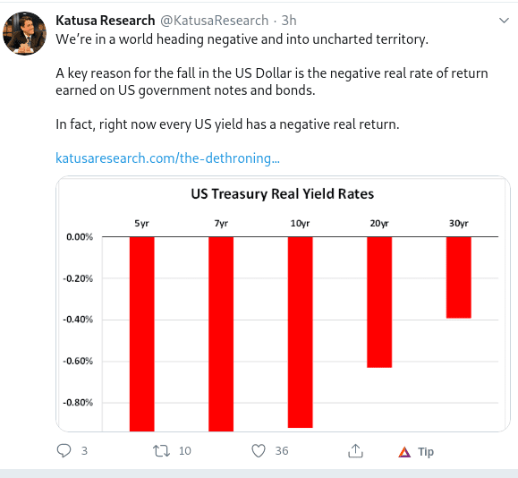 This means that the opportunity cost of holding precious metals has gone down drastically. Why pay to hold someone else’s liability, when you can hold a monetary metal that has been universally accepted for 5000 years?