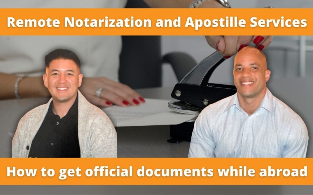 Jonathan and Will offer a comprehensive solution for remotely obtaining notarized documents and Apostilles without the need to appear physically in the US, and it even works for non-US persons for some documents. They can also remotely provide FBI background checks, e-Apostilles and other documents that normally require a trip home. Turnaround for some services is as little as 24 hours.